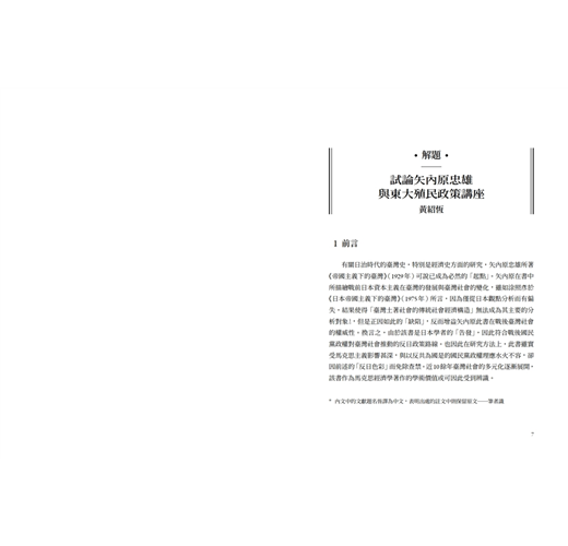 ● 解題:試論矢內原忠雄與東大殖民政策講座——黃紹恆