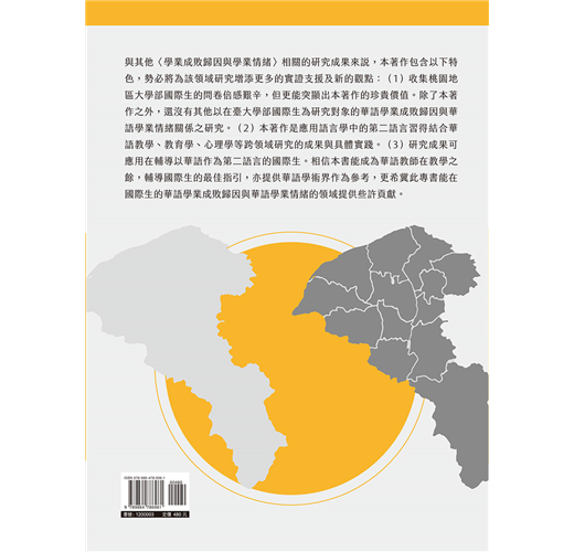 與其他〈學業成敗歸因與學業情緒〉相關的研究成果來說,本著作包含以下特色,勢必將為該領域研究增添更多的實證支援及新的觀點:(1)收集桃園地區大學部國際生的問卷倍感艱辛,但更能突顯出本著作的珍貴價值。除了本著作之外,還沒有其他以在臺大學部國際生為研究對象的華文學業成敗歸因與華文學業情緒關係之研究。(2)本著作是應用語言學中的第二語言習得結合華文教學、教育學、心理學等跨領域研究的成果與具體實踐。(3)研究成果可應用在輔導以華語作為第二語言的國際生。相信本書能成為華語教師在教學之餘,輔導國際生的最佳指引,亦提供華語文學術界作為參考,更希冀此專書能在國際生的華學業成敗歸因與華語學業情緒的領域提供些許貢獻。