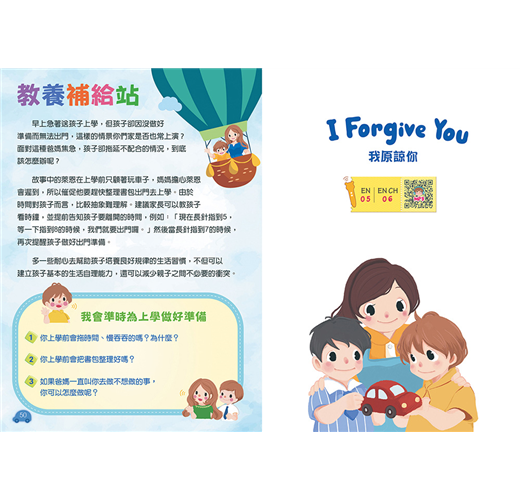 每篇故事附有「教養補給站」,引導父母與孩子的交流,培養孩子思考及表達能力增進親子互動時光!