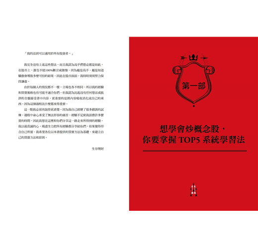 在成為專業股票投資人後,他積極向大眾分享自己的實戰模型,教導大家如何在無法預測的股市中存活下來,且更進一步實現財務自由。關於更多的作者資訊可掃書內QR-Code,觀看影片。
