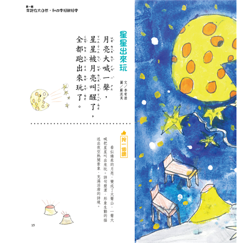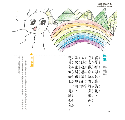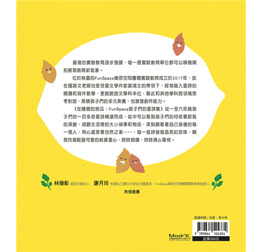 《在睡覺的地瓜:FunSpace孩子們的童詩集》從一至六年級孩子們的兩百多首童詩精選而成,從中可以看到孩子們如何依著節氣的演變,微觀生活裡的大小瑣事和物品,深刻觀看著自己身邊的每一個人,用心感受著自然之美……,每一首詩瑩瑩晶亮如珍珠,顯現玲瓏輕盈可愛的純真童心,時時朗讀,時時清心喜悅。