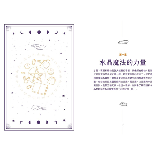 簡要概述了超過100種常見水晶,讓入門女巫能輕鬆識別,並且完全了解它們的魔法特性。