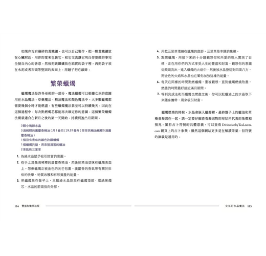許多女巫相信世界上萬物有靈,認為自然中的一切都有靈性,水晶則像是這種生命能量中格外強勁的群集。就像你可能會和某些動物或者植物建立獨特的連結一樣,在你學習如何把水晶夥伴融入巫術實踐的時候,你就會和它建立獨特的關係。這本書也會告訴你如何選擇和採購水晶,以及如何讓它與你的巫術實踐融為一體。這本書有很大一部分在專門介紹辨別水晶的方法與其魔法特點,從而幫助你加深對水晶世界的理解。書的第二部分則會介紹一系列法術和儀式來讓你試驗,每一種法術都能用不同的方式喚起水晶的魔力。