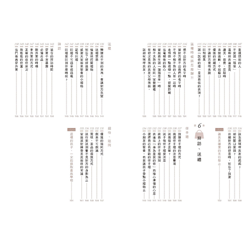 列舉257則日常情境小禮數,並提醒禮節背後的意涵