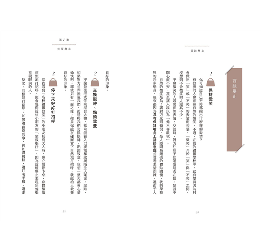•本書有很多「不知道就糟了」的禮儀,可以讓我們重新檢視自己的言行是否合宜。書中強調「教養是可以改變的」,這句話深深打動了我。