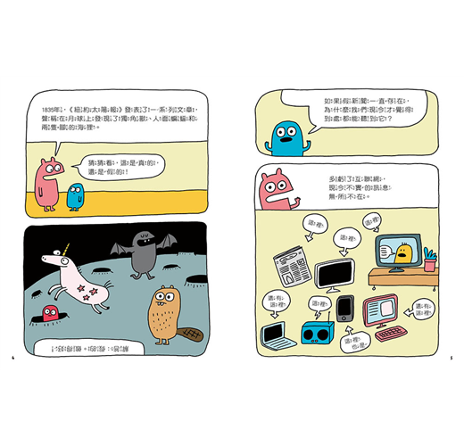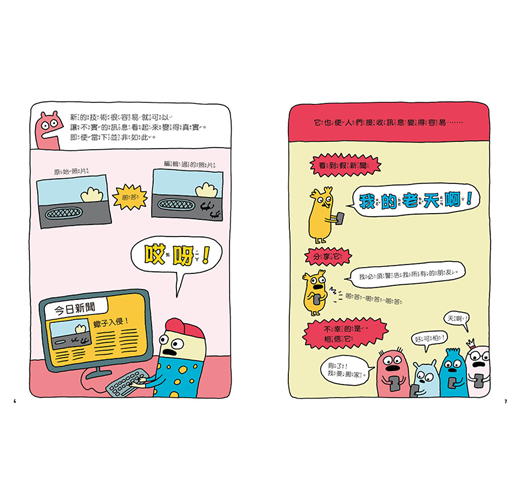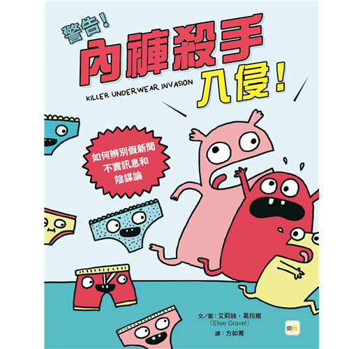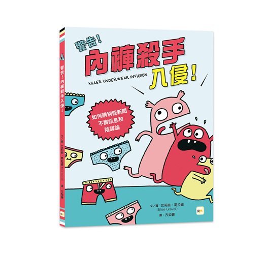 《內褲殺手入侵!──如何辨別假新聞、不實訊息和陰謀論》,這是一本相當有趣且來得及時的圖文讀本,利用看起來既搞笑又異常可愛的人物插圖,加上幽默的語氣,趣味易懂的圖文舉例,向小讀者們解釋了日益重要的媒體素養主題,幫助他們在這個非常時期,輕鬆學習如何分辨哪些新聞是真實的,哪些不是,從而建立獨立思考的能力。
