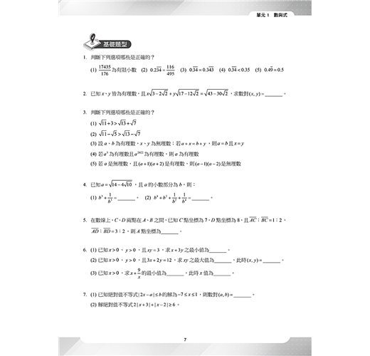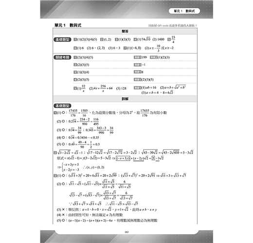 各單元題型分為基礎題型、關鍵考題、精選類題。另外加入數B專區,方便數A跨考數B或只考數B的學生使用。