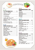 從湯匙等金屬產品開始,描繪玻璃器皿、陶瓷器等餐具類。除了器具的質感表現,從盛放在玻璃碗內的沙拉、倒入茶杯的紅茶,到盤子上的荷包蛋,都詳細說明了畫法的訣竅。舉例來說,利用重疊顏色形成互補色混色而呈現出來的深綠色小黃瓜,就是宛如魔法般的COPIC用法。