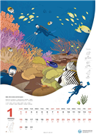 海保署在新一年的月曆特地企劃安排大家跟著各領域的海洋生態調查科學家們,攜帶各式樣框、相機、攝影機,或身著潛水設備,從臺灣北部的岩礁到南部的珊瑚礁生態系、東沙國家公園探索環礁。從東部海域的深海熱泉跟表層優游的鯨豚,到西海岸的桃園藻礁、彰化泥灘地跟臺南紅樹林,記錄豐富多樣的海洋生物,當然也包括即時影像監控設備、衛星標識器、水下聲學設備、遙控載具等,以捕捉唯美唯肖的海洋生物動態,此外,在悠閒享受友善垂釣樂趣時,順便也可以做生物資源調查喔,值得與您分享,特別在此推薦給您。