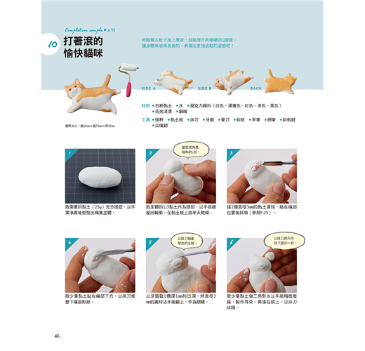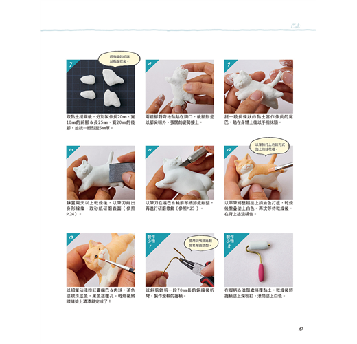 此次以個人愛用的石粉黏土製作了9種動物,共16件模型,並將作法仔細收錄於本書之中。