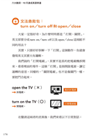 ‧打開(關掉)電視,用open(close)?正確是:turn on(turn off)。