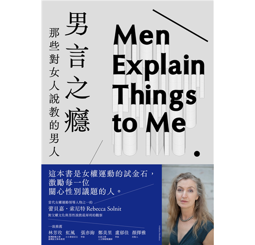 本書收錄蕾貝嘉‧索尼特(Rebecca Solnit)九篇散文,探討男人毫無根據的自信,如何助長性侵、家暴等#Metoo事件,從愛說教的男人到強暴文化,從性醜聞案到婚姻與家庭,從吳爾芙(Virginia Woolf)到殖民主義。探討的主題雖然不在父權文化會關心的範圍之內,卻是非常重要的議題。
