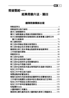 三、本書依個別勞動關係、集體勞動關係、勞工保險、勞工安全衛生、職業訓練與就業服務、其他相關法規等項目,編列法規之呈現順序,並針對勞動基準法、憲法、民法及大法官會議解釋擬有「條文要旨」,以利讀者快速檢閱及幫助讀者了解條文之意義。