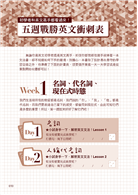擔心買了文法書後每次學習都停留在第一課,到頭來只有第一課最熟悉嗎?別擔心,本書特別設計「五週戰勝英文衝刺表」,不論是初學者還是想複習的英文高手,都可以透過這個計畫表精準掌握學習進度!