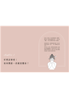 ․本書除了可以當成脫單的戀愛工作書使用,更可以作為兩性關係的心理勵志小品閱讀。~~ Vito 大叔