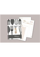 內頁以單色(咖啡色)印刷,採用80磅淡米色文采紙,書寫舒適,備有高達38道食譜自編索引目錄,以4頁為一循環,貼心提供遺失時個人聯絡資訊欄。