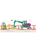 從補洞開始,細膩描繪各種車輛細節,經由施工過程,孩子可以輕易認識各種工程車輛的名稱和功能,如卡車、自卸卡車、翻斗卡車……等,是本非常生活化的的知識繪本。