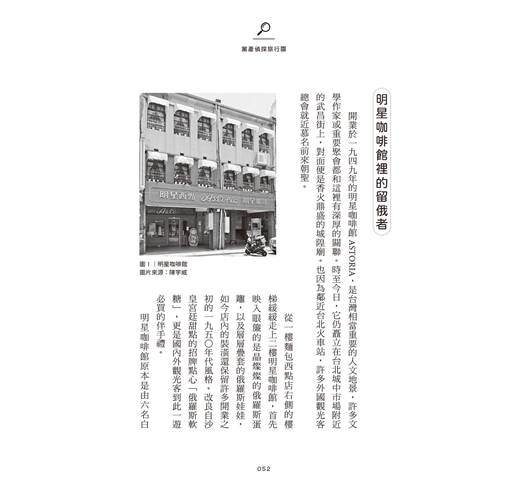 鄧慧恩教授等執筆的研究者們,採取了「講古」的角度,詳細考證這些「黨產」的前世今生,讓我們看到「黨產是怎麼成為黨產的」──它們曾有的輝煌與意義,它們被覆蓋乃至於被竄改的記憶。在這樣的框架底下,全書八篇文章都有頗為嚴整的體例,引述了大量的文獻來重建歷史現場。但從寫作上來說,我更喜歡的卻是某些紀錄片式的、匠心獨運的細節編排。比如第三章〈台東警察斧柾生的台北紀行〉從一名日本警察的記述開始,寫出了日治時期的警察會館,如何在戰後成為「清洗日本文化」的演說比賽場地,歷史變幻的諷刺一覽無遺;或者在第五章〈立足帝寶不是夢〉的結尾,神來一筆地以仁愛路上的7-11「中廣門市」收束全文:「明明,這附近就沒有中廣。」這些精巧筆法,都使得《黨產偵探旅行團》脫離了冷硬的學術書,而多添幾分非虛構文學的韻味。