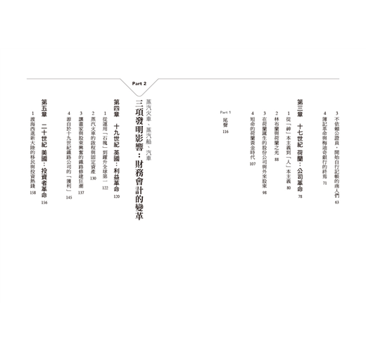 本書中一同進行的「會計的歷史巡禮」有以下兩點特徵: