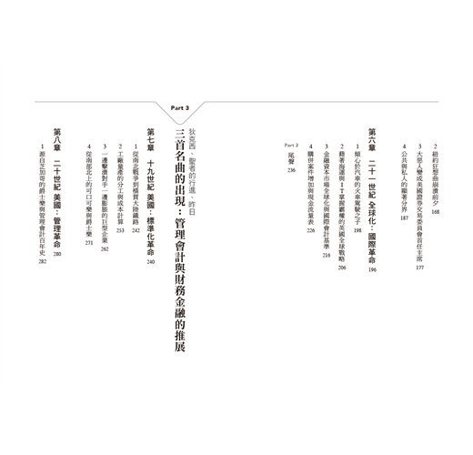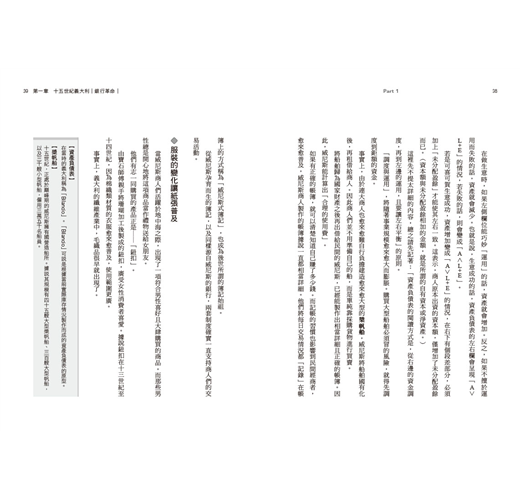 讀者在輕鬆閱讀的氣氛之下,將隨著故事脈絡,及一眼就可理解的圖解,逐漸掌握經濟霸權的國家歷史變遷,並了解簿記、財務會計、管理會計、金融制度的發展及運作。