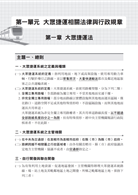 大眾捷運法為各捷運公司考試之出題頻率及百分比最高者,法規往往是你最難熟讀的部分,到底是要全部背起來,或是看過即可,因此作者特別針對有可能出題的相關法規,作系統化與重點式的整理速記,讓你即使是要背,也絕對是背到重點。