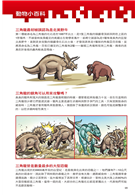 設有「動物小百科」單元,介紹額角和頭盾不能用來攻擊的三角龍、走路同手同腳的風神翼龍、巨大滄龍的祖先是小型蜥蜴等基本常識,以及吃飽飯就會吐食丸的雕鴞、不是鯨魚而是海豚的虎鯨、擁有無敵鐵甲的鱗角腹足蝸牛等超炫常識,讓小朋友有系統的學習。