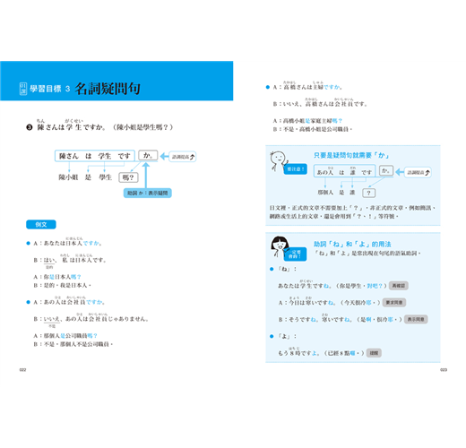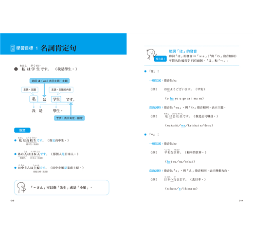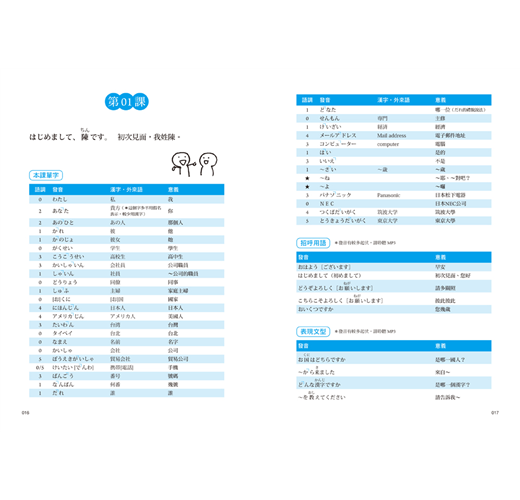 【初級本 01~12課】:平、片假名之後的初階課程,開始學習日語基本表達。你將學會: