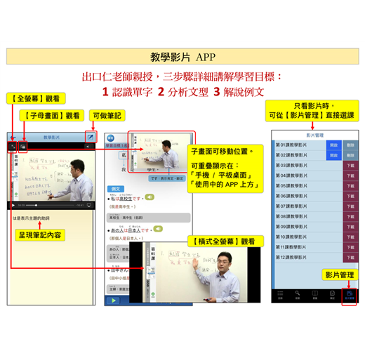 【教學影片 APP】:1課1影片,出口仁老師詳細解說「42個學習目標、文法要點、例文」