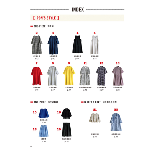 所製作出來的洋裝、外套、裙子、襯衫、褲子、包包等單品,