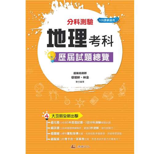 有別以往的考試題型,分科測驗新增「混合題型」與「卷卡合一」,題目素材多引用生活或學術探究情境,測試學生整合運用、閱讀理解、圖表判讀、邏輯推理以及證據引用之能力。綜觀近年的指考亦朝向此趨勢命題,故欲在分科測驗中奪得佳績,演練歷屆試題絕對是最佳良方!鴻漸文化《分科測驗歷屆試題總覽》系列收錄近5年歷屆試題+3回擬真模擬試題,特聘大學教授及補教界名師群,包括王晴天、孫唯洺、劉河北、葉施平、徐明軒、林全、余紫瑛、林冠傑、莫旻、王宇、邱天、蔡任圃、吳雅嵐老師等等,以獨特且精闢的觀點深入剖析每道題目,題題詳盡解析,讓同學可以「知其然,更知其所以然」,讓您在練習題目時也能做好全方位複習!