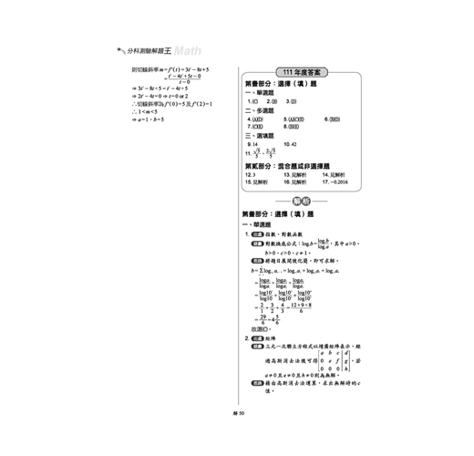 坊間對於多選題題解,僅將各個選項的解答概略寫出,並未標明是非對錯,同學常常得翻回題目頁面,才能逐一對照檢視各選項敘述,有鑒於此,鶴立解題王不僅解析詳細,還將各選項逐一分析,讓同學不僅知其然,更知其所以然。
