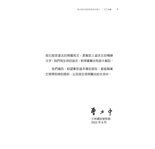我們禱告,盼望拿到這本書的朋友,都能藉著它被帶到神的面前,以及祂生命與醫治的水流中。