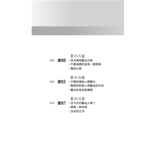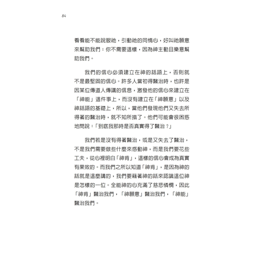 期待讀者藉這本書被帶到神的面前,進入祂生命與醫治的水流中,病情好轉甚至得醫痊。