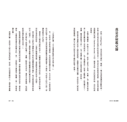· 在這裡,詐病幾乎天天上演。為了多領藥、為了逃避勞役、為了搬到其他舍房、為了戒護外醫……我也因此練就了一身詐病判定功夫。