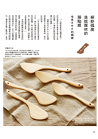 然而,在這本書裡稍微擴大了這個詞彙的釋義範圍,涵蓋了包括餐桌或廚房周邊所使用得到的木作餐用道具。意思就是說,諸如抹刀、飯勺、筷子&筷架、奶油盒、茶罐、便當盒、木碗、托盤等也將一併登場。