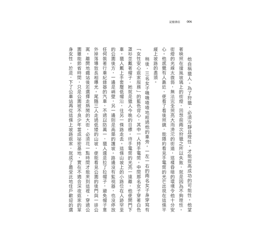.《記憶書店》乍看是個關於復仇的故事,實際上從「獵人-獵物」的關係進行各種演繹,最後又巧妙地回到書名直陳的「記憶」與「書店」的空間意涵,讓推理犯罪故事多了幾層哲理的探究,真有意思。
