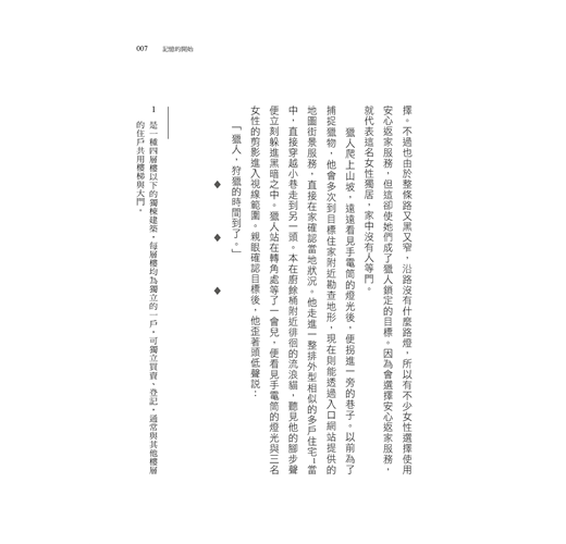 .一般人對「古書店」的印象,不是載滿歷史記憶的古樸容器,就是沉滯靜謐的時間流動,然而這樣的特性,竟也可以連結到「連續殺人魔 v.s. 倖存的復仇者」的對決現場?