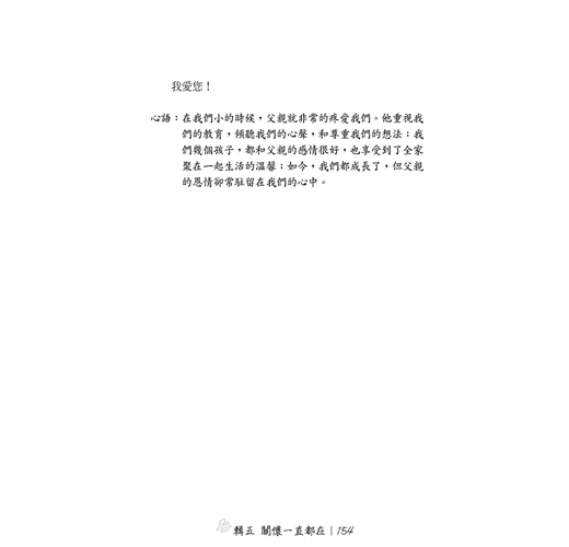 心語:在我們小的時候,父親就非常的疼愛我們。他重視我們的教育,傾聽我們的心聲,和尊重我們的想法;我們幾個孩子,都和父親的感情很好,也享受到了全家聚在一起生活的溫馨;如今,我們都成長了,但父親的恩情卻常駐留在我們的心中。