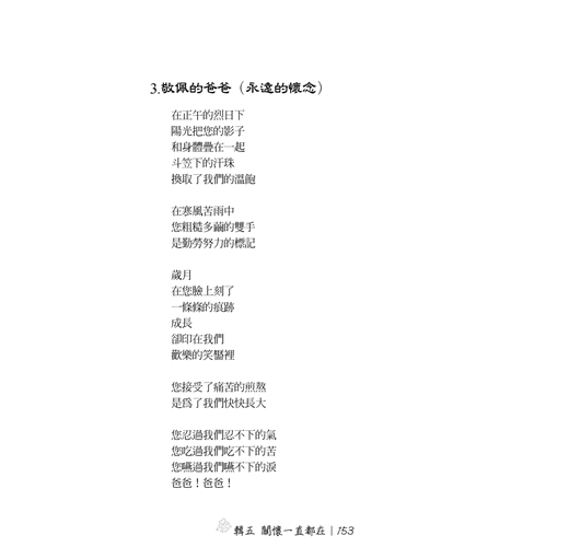 心語:老爹雖然已過逝多年,但在我們相處的歲月裡,對我來說是個好幫手,這份恩情,總是縈繞在我的腦海裡。所以平時如果能和兒女有一致的思維和想法,我都極力的支持,這份恩情源於老爹,給予我的示範,這還真的是令人永誌難忘啊!
