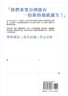 今年春,創辦人陳永興醫師以階段任務完成,決將《民報》交棒新世代接手,並選輯若干過去刊載的專欄文章,以實體書及電子版形式,結集交由秀威出版社出版,留做紀念。選輯文章涵蓋國家主權、台灣國際地位、兩岸關係、政府治理、政黨競爭、領導人誠信、經濟、國防、司法等面向。選輯文章雖由時事議題所觸發,但撰稿人以其豐富學養及深厚功力,得以跨越時效框限及時空條件,提出獨到見解及深度觀察,經得起時間的淬鍊。