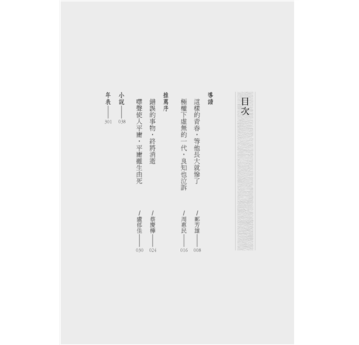 專文導讀 鄭芳雄 (教授) 、周惠民 (教授) ;專序推薦 蔡慶樺 (作家) 、盧郁佳 (作家);