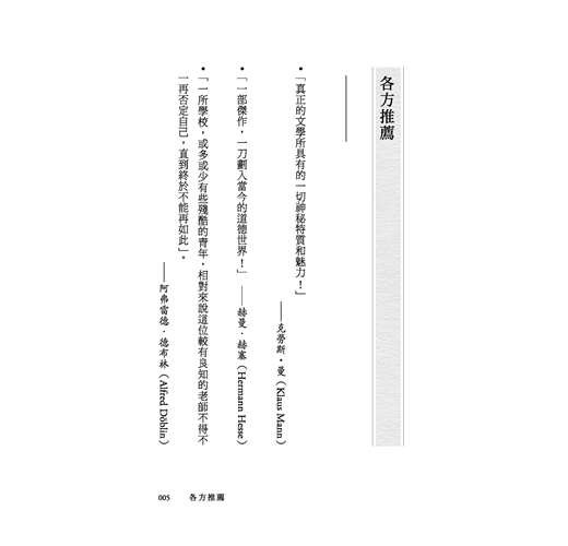 國際文豪托瑪斯.曼、赫曼.赫塞、克勞斯.曼……等,齊聲推薦。
