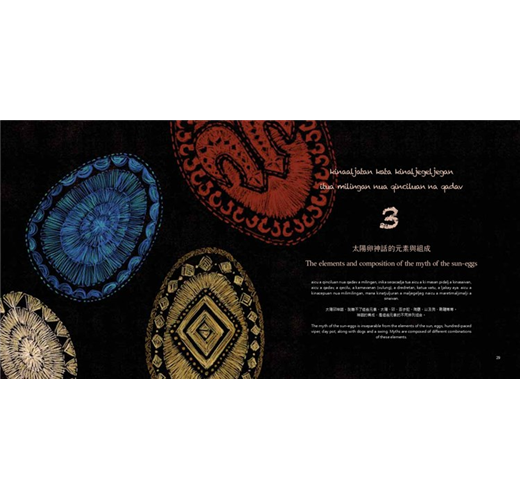 《太陽卵.陶甕.百步蛇》將台灣南部排灣族盛傳的太陽卵神話,透過繪本作最真實的反映,展現出原住民自己觀點的繪畫。繪者運用排灣族獨有的代表性色調、元素來描繪太陽卵神話。對於排灣族而言,神話不是遙遠的傳說,也非童言童語的存在,而是與現代人的生活契合在一起。全書特別以排灣語、中文、英語三語來呈現,不僅要傳達「太陽卵神話與我們同在」的精神,也企圖向太平洋國家展現台灣原住民族文化所蘊含的深厚力量。