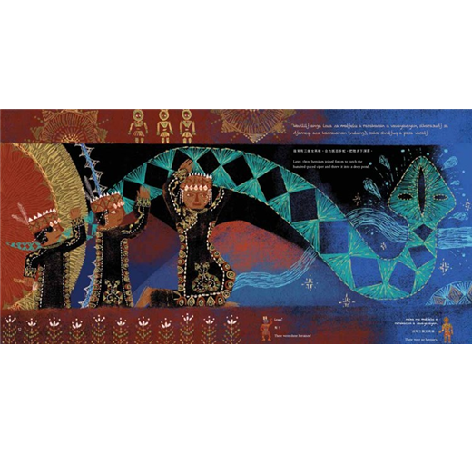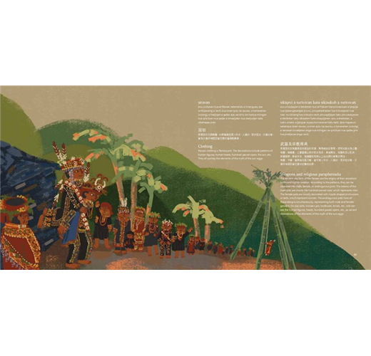 訂購本商品前請務必詳閱退換貨原則。《太陽卵.陶甕.百步蛇》將台灣南部排灣族盛傳的太陽卵神話,透過繪本作最真實的反映,展現出原住民自己觀點的繪畫。繪者運用排灣族獨有的代表性色調、元素來描繪太陽卵神話。對於排灣族而言,神話不是遙遠的傳說,也非童言童語的存在,而是與現代人的生活契合在一起。全書特別以排灣語、中文、英語三語來呈現,不僅要傳達「太陽卵神話與我們同在」的精神,也企圖向太平洋國家展現台灣原住民族文化所蘊含的深厚力量。