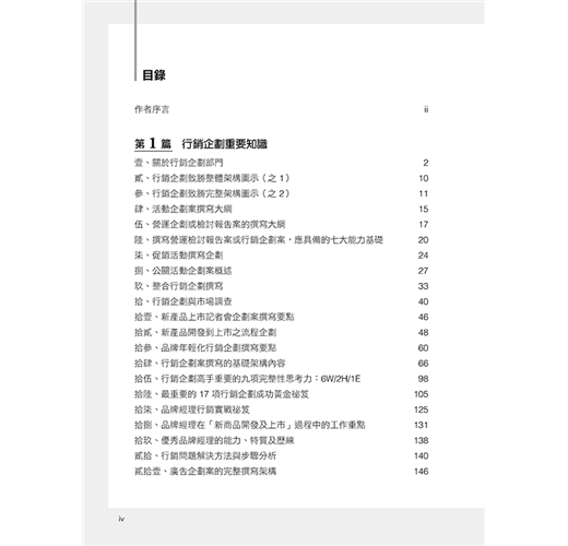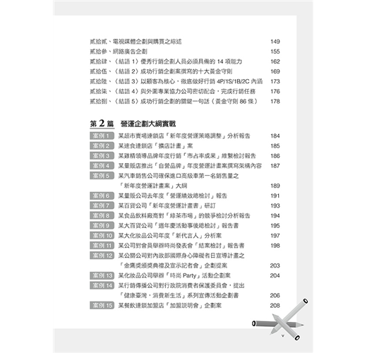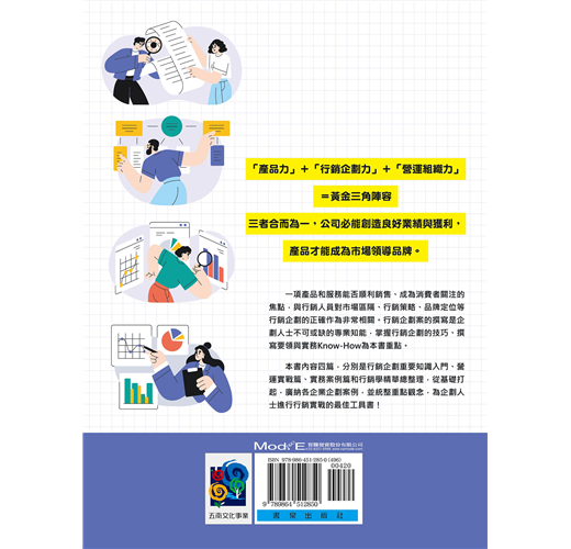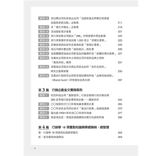 本書內容四篇,分別是行銷企劃重要知識入門、營運實戰篇、實務案例篇和行銷學精華總整理,從基礎打起,廣納各企業企劃案例,並統整重點觀念,為企劃人士進行行銷實戰的最佳工具書!