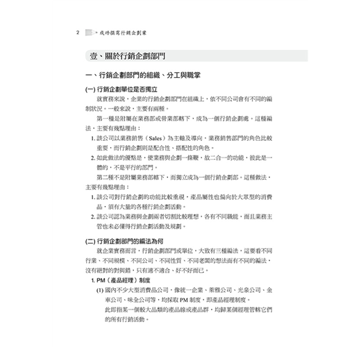 第一種是附屬在業務部或營業部轄下,成為一個行銷企劃處。這種編法,主要有幾點理由: