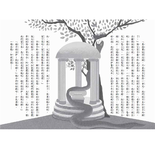 「我的孩子,」阿加曼儂嚴肅的說:「你也要作一次遠行,不過在這之前,我們必須獻祭,這次的獻祭非常重要,孩子,你一定要參加。」說到最後幾句話,阿加曼儂已哽咽得幾乎無法出聲。