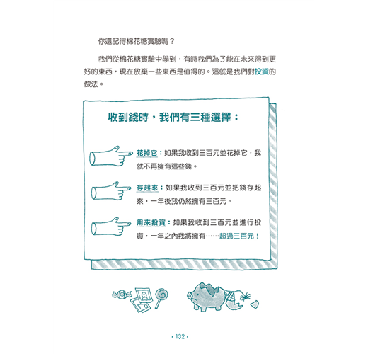 學花錢 ►透過「棉花糖實驗」學習自主選擇,懂得分辨價格與價值的差異,建立負責任的消費習慣。