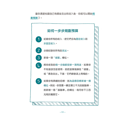 學存錢 ►思考儲蓄的意義,培養未雨綢繆的理財概念。練習建立自己的收支清單,一步步做好預算規劃。