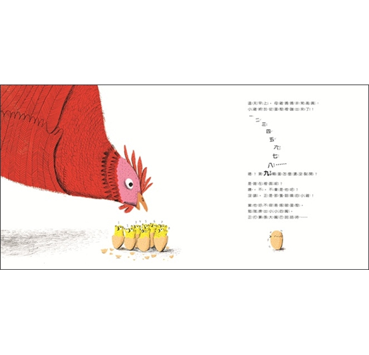 母雞媽媽從來沒有生過那麼多的蛋,一共有九顆蛋。其中有一隻小雞老愛嘰嘰喳喳的說個不停,不但喜歡說話也喜歡問問題,母雞被煩到快要受不了,只好叫他「閉上你的雞嘴」,大家也都跟著這樣說他,直到有一天,小雞難過得離家出走了……